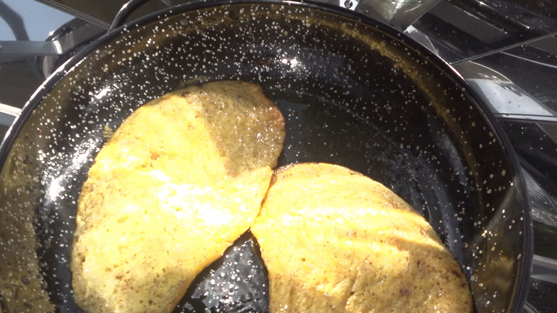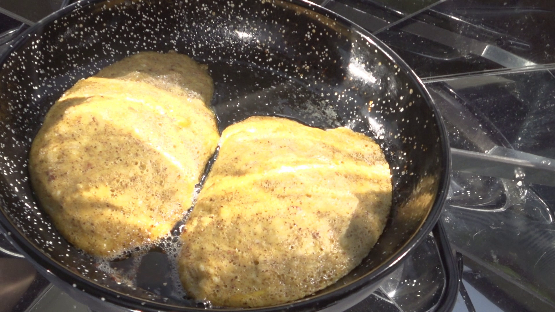 Dessa pannkakor är som ett mellanting mellan omelett och traditionella pannkakor. För bästa resultat ska dessa pannkakor tillagas på medelvärme. Om temperaturen är för hög kan de lätt fastna eller förbli kladdiga inuti.
